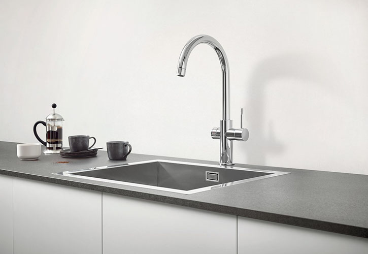 The slim design of the GROHE Red boiler means it can be placed conveniently under the sink to save space. It is made of titanium to ensure maximum durability as well as resistance to corrosion and limescale. With GROHE Red, kettle hot water is available on demand while effectively saving resources, especially in comparison to heating water with an electric kettle or on a hob. By providing hot water in the exact amount needed, unnecessarily heated or surplus water is now a thing of the past. A particularly handy feature is the GROHE Red pot filler function, allowing a bigger pot to be filled with up to three litres of water at once. The GROHE Red boiler is available in two sizes: the medium size has a capacity of three litres, whilst the large provides 5.5 litres of kettle hot water. As there are no additional parts required, the installation of the GROHE Red is quick and hassle-free.